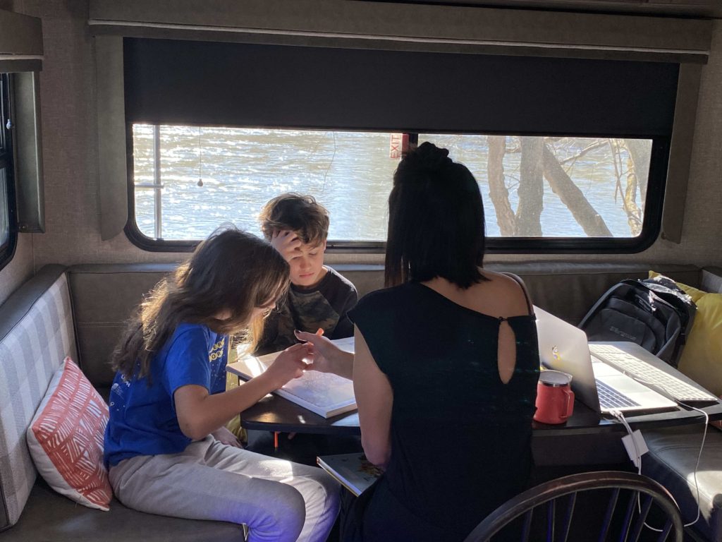 We are wrapping up our second full week in our new home. There has been a huge learning curve to living in a small space that moves every so often. Ben is working, I am teaching the kids, we are living our everyday lives together. Truly together – ALL THE TIME. This week was the start of scheduled home school. There have been breakdowns. There has been yelling. There have been tears. There has been, “what have we done!”