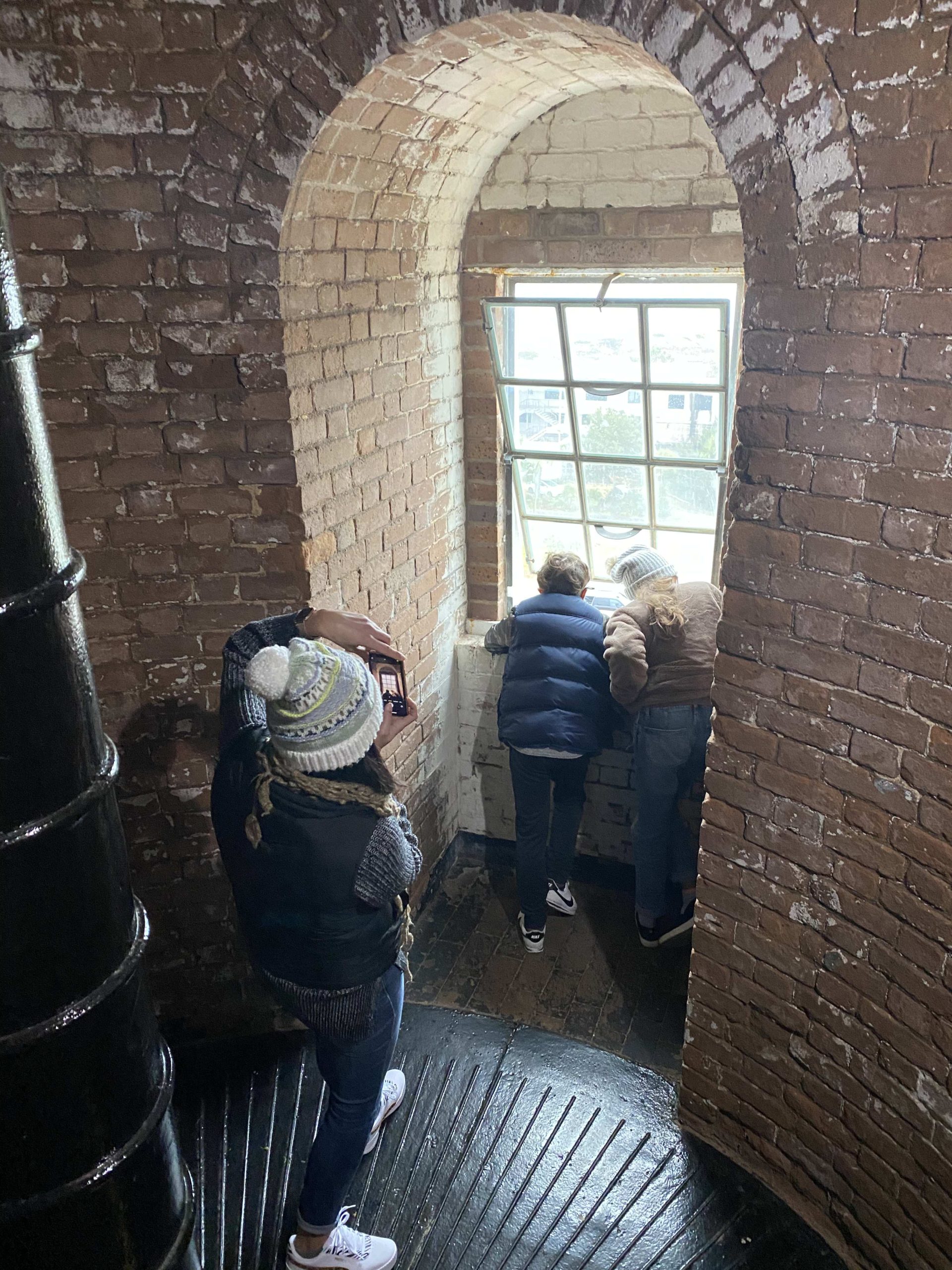 But let’s talk about today. It was a good day. At the heart of this, today is what it is all about. Ben worked in the morning. The kids did their school work. We left for Savannah at noon. There has been so much chaos and in the midst of it – we needed this to remember that we are good together. That’s why we did this. Our daughter, who can complain if she has to walk for more than 5 minutes – had zero complaints today. Again, let’s be clear, it was not a pretty day. It was 50 degrees and rainy. When we got to Tybee Island we decided to tour the lighthouse. While it is beautiful and you should absolutely visit it to learn the history if you are there, it is not like we arrived at the Eiffel tower. But that is how our kiddos saw it. The Inn Keepers cottage brought on their imagination of how we could live in a house like that. They talked about their rooms and imagined eating meals in the kitchen. We climbed the 178 steps to the top of the lighthouse – Jackson counting the whole time and Sloan trying to throw him off. They laughed, they didn’t fight. This tour was wrapped up with the museum – that smelled eerily like cigarette smoke and felt like a sauna. Our children loved it. They found the old boardwalk ride exhibit and Jackson couldn’t stop asking about the jumbo popcorn (the size of today’s small) and how big would a small be?
