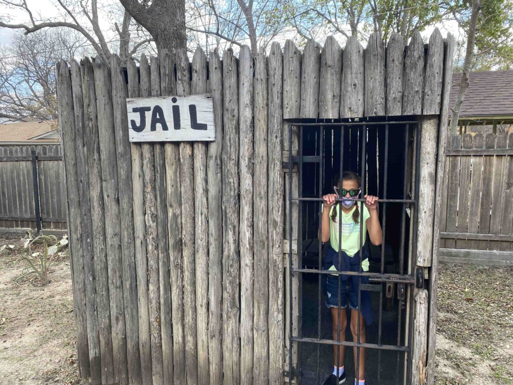 The next morning we decided to go into town to check it out. At this point, we hadn’t been to any true ghost towns, and Del Rio is not considered one. But you could have fooled us. There was no one and nothing on the streets. Nearly every storefront was closed and boarded up. We strolled down the street and eventually came to a little place called the “Whitehead Museum.” It was full of local history and had a little “town” built inside that showed how Judge Roy Bean would have held court – basically while sipping bourbon and holding a gun. It also had small, odd collections of things donated by locals, like a crazily large assortment of Christmas Manger pieces. It was interesting enough to be entertaining until we got hungry. We were lucky enough to find a little place called Mesquite Creek, where we grabbed a bite to eat. It was surprisingly good and I also got to do some shopping. Then we found the oldest winery in Texas and sat outside with the kids while we played games and sipped our drinks. On the way back (while searching for a water refill station) we found a tiny Mexican Bakery and stocked up on lots of sweet treats.