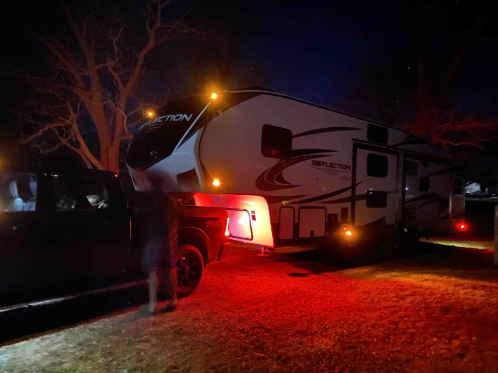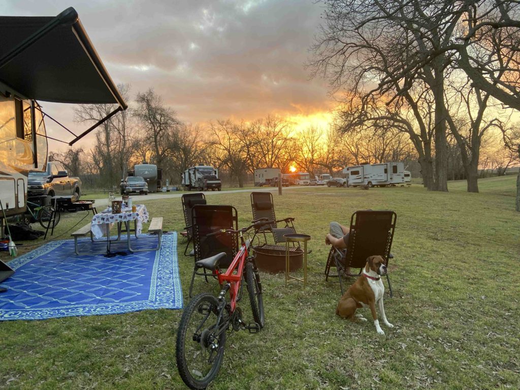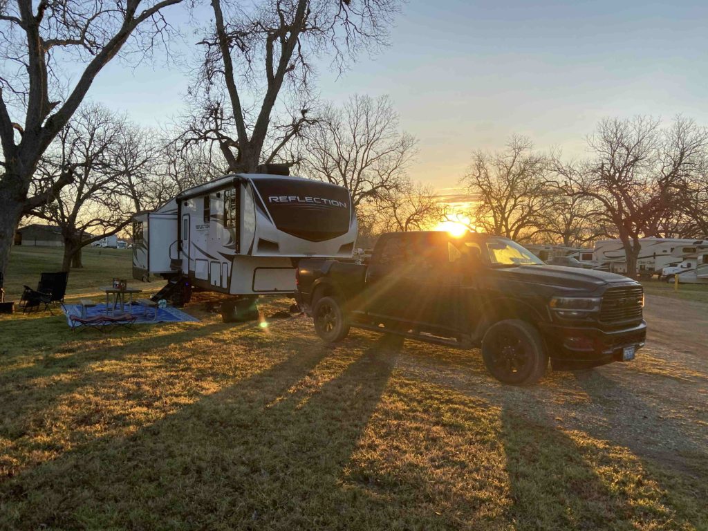 It was dark when we pulled in and we were told there was only 1 site left with sewer hook up and we could squeeze into it if we wanted. It was on the inner circle (already done that) and backed to cabins. The other options were closer to the playground and backed to a pecan orchard – but no sewer. Basically, no sewer means exactly what it says, there is no place to drain your dirty water – any of it. We’ve done it before and we would only be here for 4 days, so we opted for the privacy of the Pecan Orchards. I am so glad we did! We had so much space. It was beautiful!