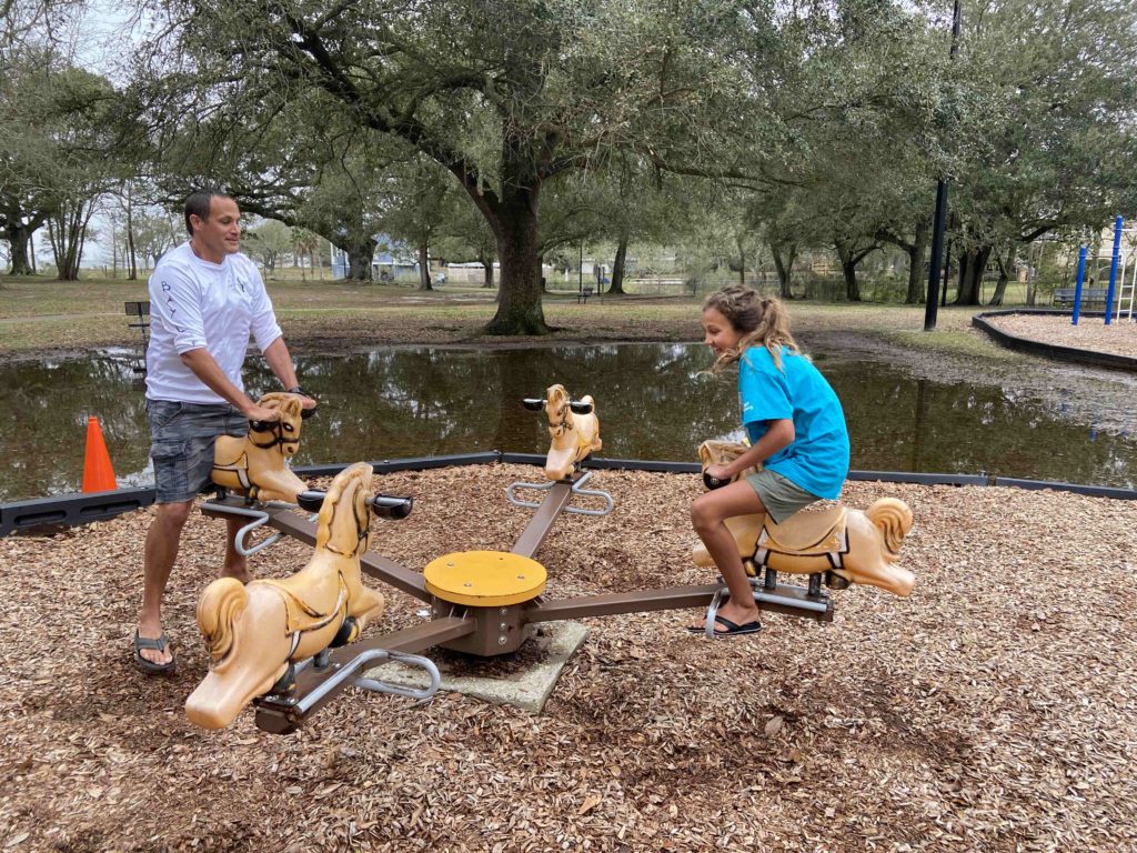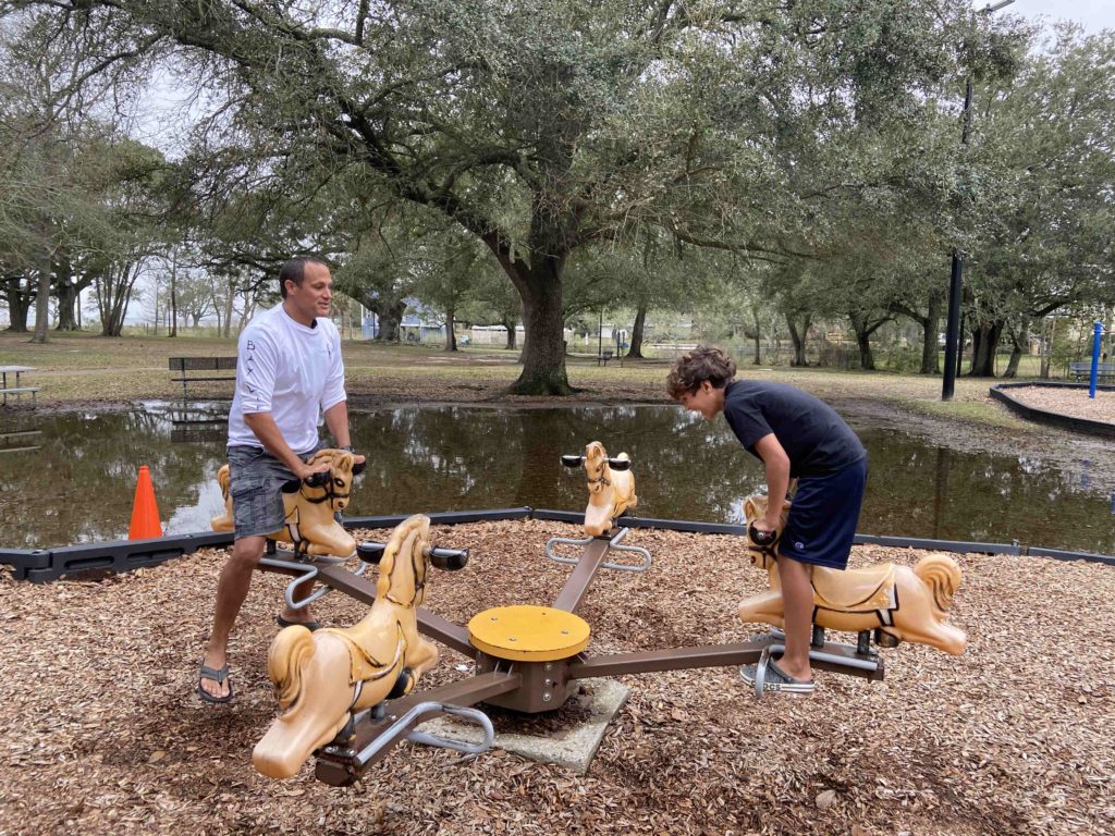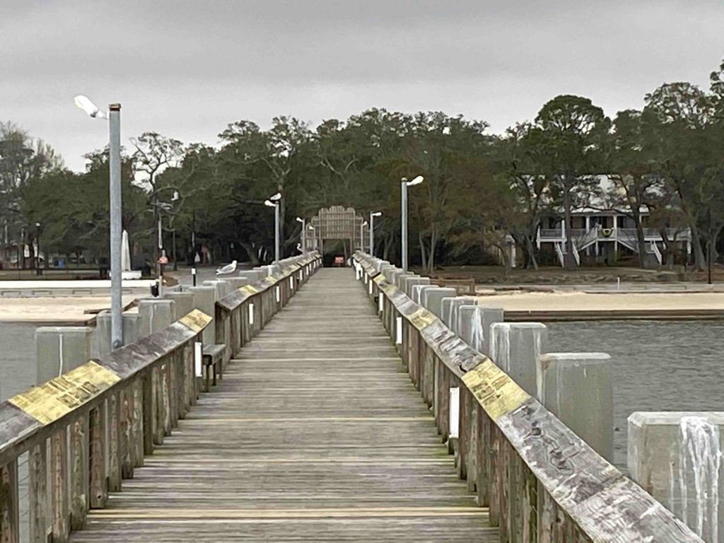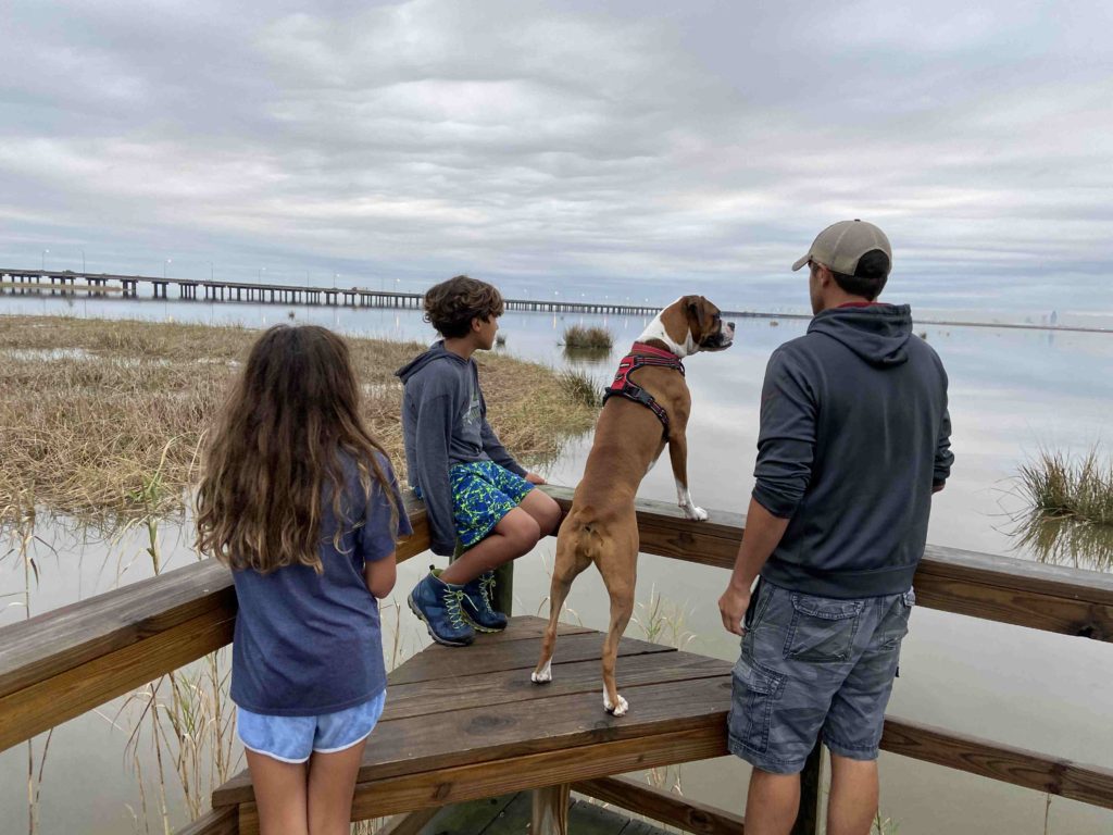 We have a map tracking the progress of our adventure (2 actually – 1 inside and 1 on our door). Lots of campers have these and everyone has different rules for adding a state. For us, our rule is simple. We must do something in the state – visit some site or do an activity – and our camper wheels must role through. We were staying in Alabama as a layover before Louisiana. We had no plans to stay in Mississippi, but we were going to drive through so we decided to make a quick trip during one of our afternoons in Alabama. I did a quick search, and the closest town with anything of significance was Pascagoula. The google search engine told me there was a water side walk with a Hurricane Katrina Memorial. We packed up the kids and discussed what happened during Katrina on our 45 minute drive. As we drove, we passed several ramshackle homes and run down businesses and the sky turned more and more gray. Ben and I questioned our decision. Once we found the memorial site, we also found a huge playground. I love my children because this was a highlight for them, they are always able to find a silver lining. We played for a while and then walked down to the memorial which explains the height of the waves and sustained water levels. It’s difficult to explain the significance to the kids, but we tried. The wind picked up, but there was a really long pier that called to us so we walked it. The pier had great views of the industry on either shoreline, hmmm. Highlight – we got very close to a Pelican! It started to drizzle so we beelined for the car and headed out. One last stop – Ben needed gas and we needed a few groceries so of course we stopped at Walmart, ugh. Did you know that in a Mississippi Walmart wearing a mask correctly means wearing it under your chin? Now you know. Consensus – um, you do not need to visit Pascagoula.