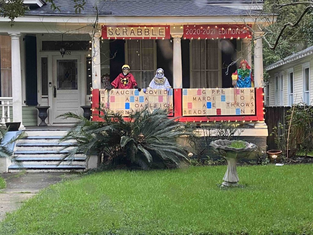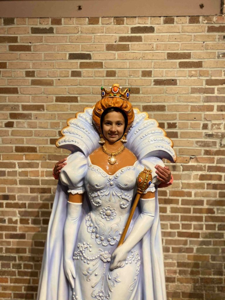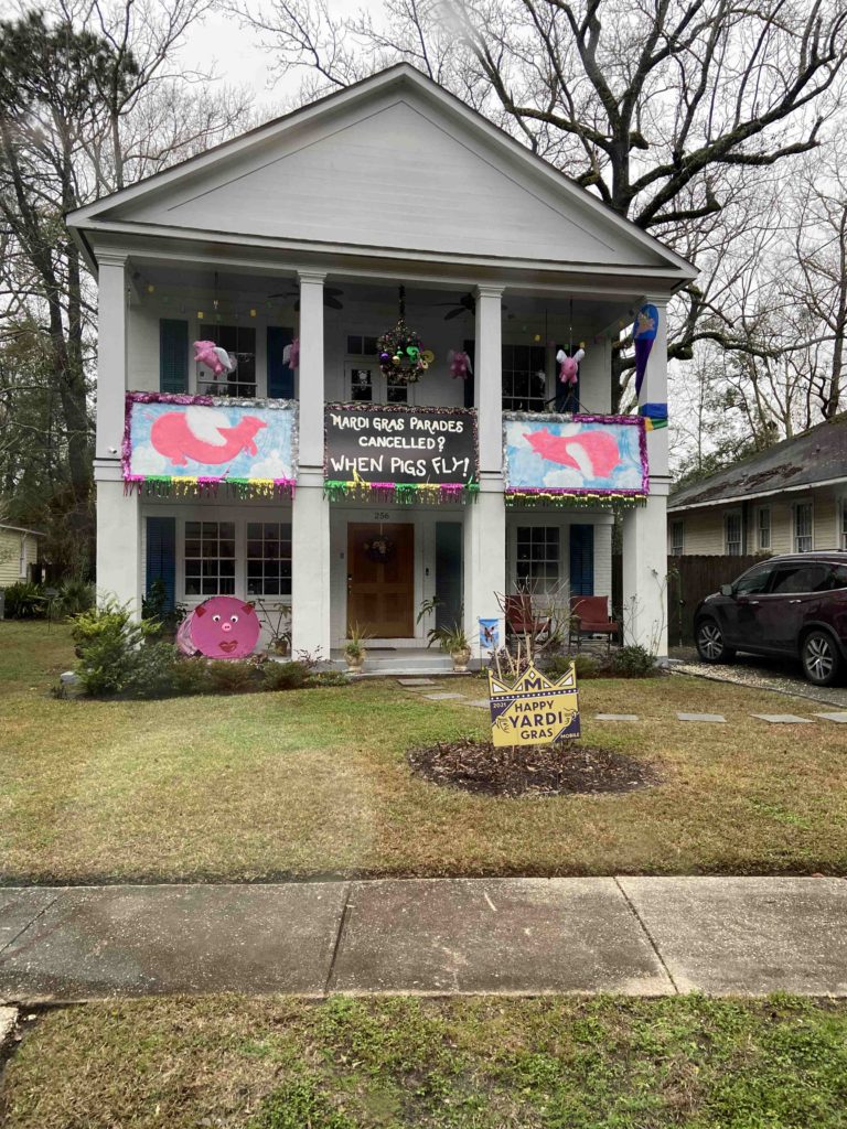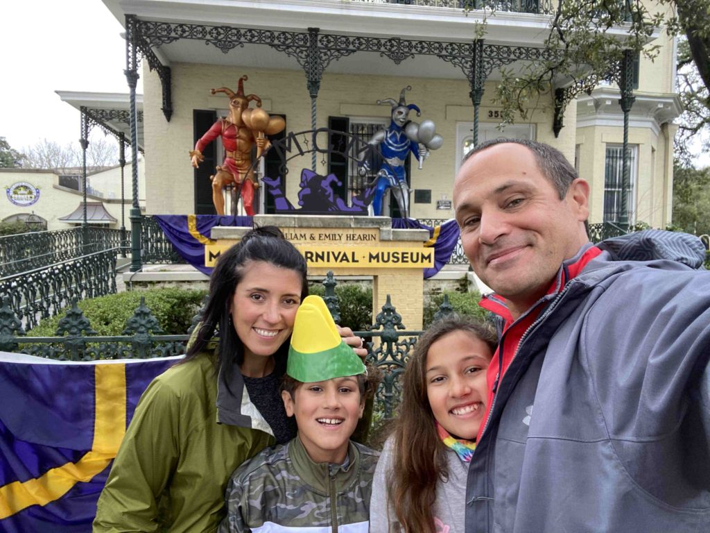 The next day we were able to visit the Carnival Museum. Ben and I have been to New Orleans during Mardi Gras. No, we did not watch the parades on Bourbon street, we watched from the more family friendly uptown. But the children have never been. The museum was great because it allowed you to see (and touch and climb on) some of the real Mardi Gras floats. There were the gowns, crowns and scepters to see as well as a rich history of Mardi Gras in Mobile. I still don’t think I’ll associate Mardi Gras starting there – although the first truly was – it didn’t grow until New Orleans. Due to covid, parades were cancelled, but they held something called, “Yardi Gras.” So we drove to see some porches in the rain. Good time overall, but we had come to the end of our time in Alabama and we were all ready to get to New Orleans and the home of our real Mardi Gras.